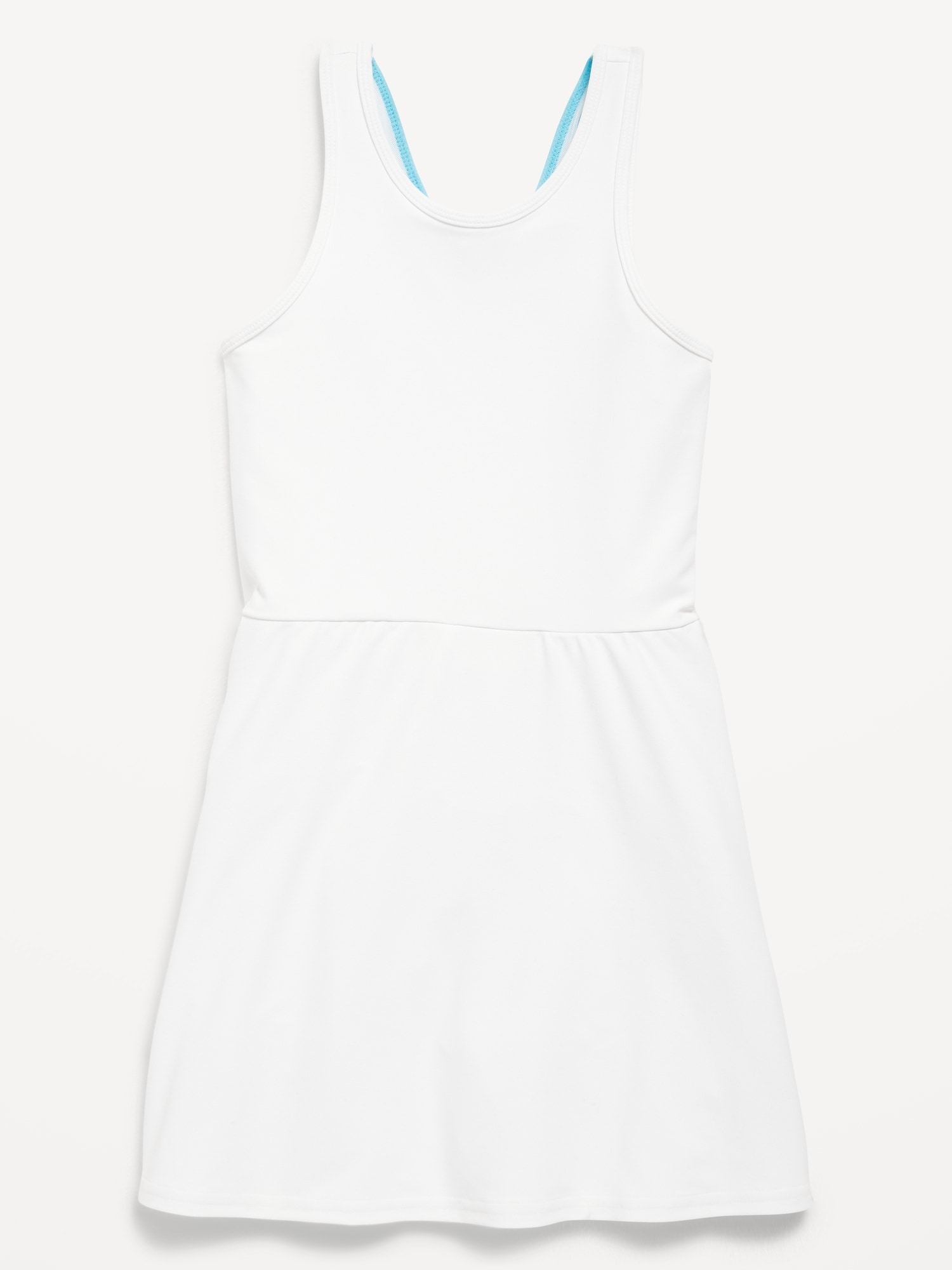PowerSoft Sleeveless Ribbed Athletic Dress for Girls: built-in shorts, u neckline, deep scoop back, wide shoulder straps, seamed waist, flared skirt, #762187