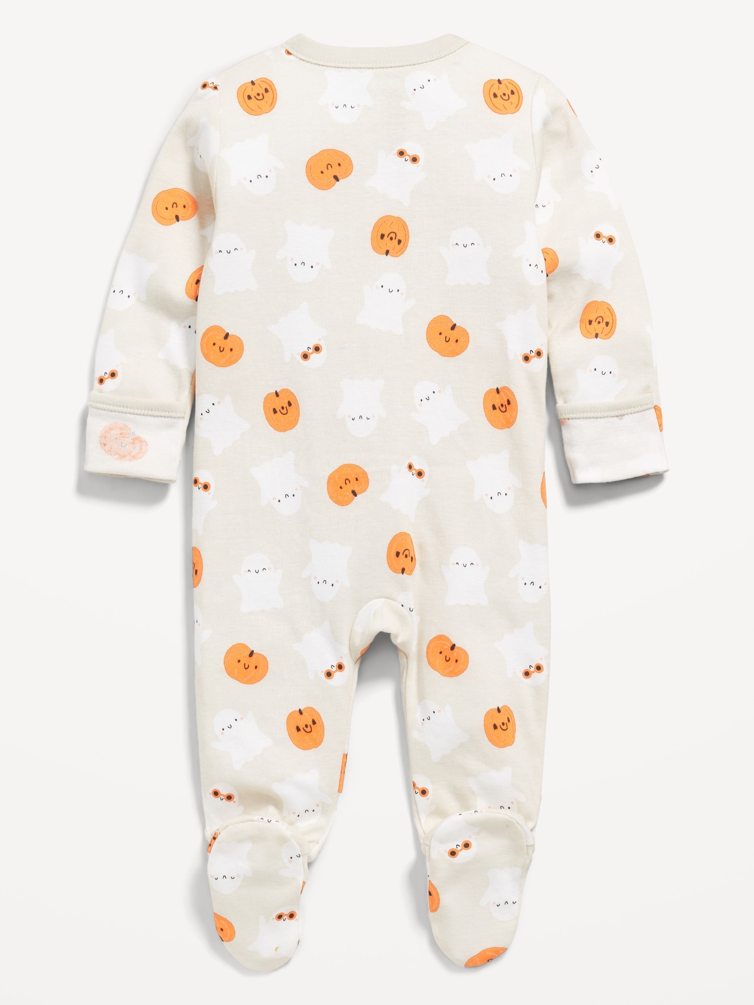Printed 2-Way-Zip Sleep & Play Footed One-Piece for Baby: rib-knit crew neck, long sleeves, fold-over mittens, reversible two-way zippersewn-in feet, #867712