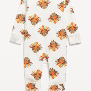 Printed 2-Way-Zip Sleep & Play Footed One-Piece for Baby: rib-knit crew neck, long sleeves, fold-over mittens, reversible two-way zippersewn-in feet, #867712