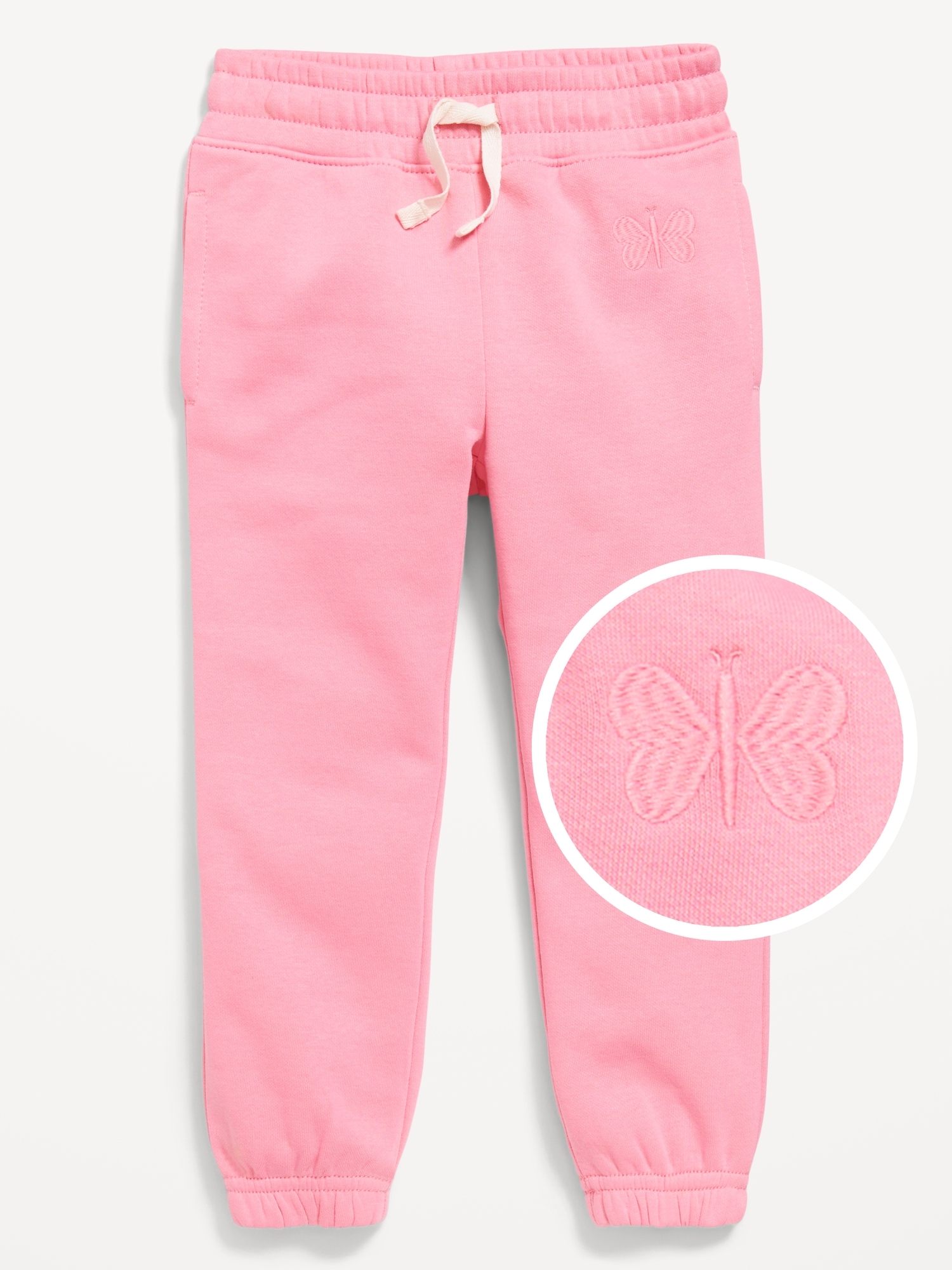 Printed Cinched-Hem Jogger Sweatpants for Toddler Girls: elasticized waistband, adjustable drawstring, on-seam hip pockets, logo graphic at hip, elasticized cinched cuffs, all-over print, easy pull-on style, available exclusively online and at old navy outlet stores., #800945