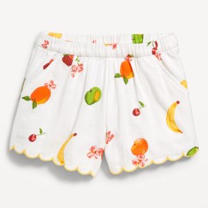 Printed Double-Weave Scallop-Trim Shorts for Girls