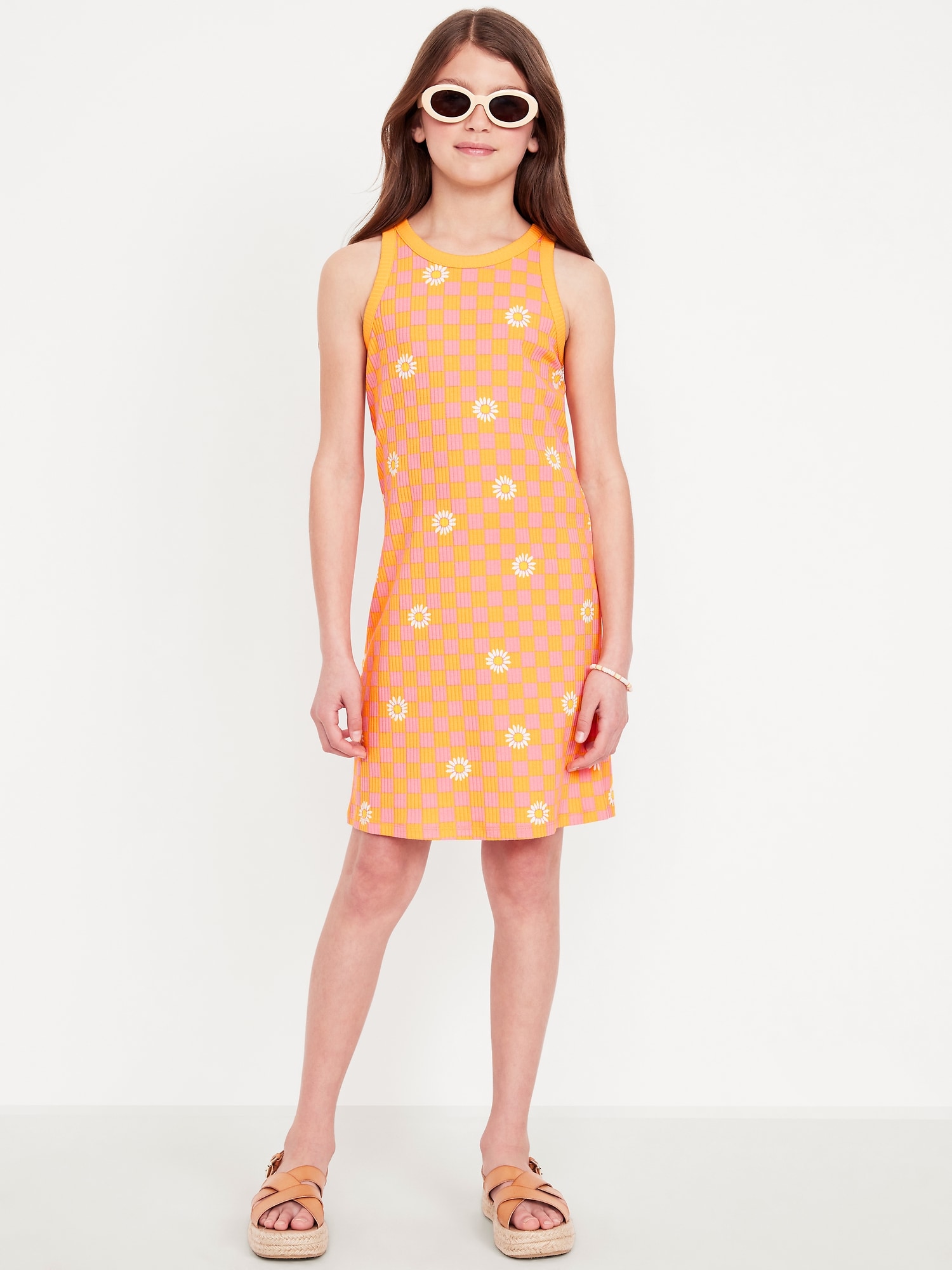 Printed Fitted Sleeveless Dress for Girls: crew neck, sleeveless, all-over print or pattern, #690951