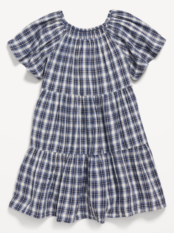 Printed Flutter-Sleeve Double-Weave Tiered Swing Dress for Girls