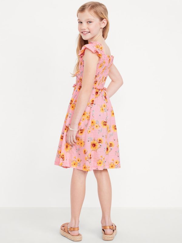 Printed Flutter-Sleeve Smocked Fit and Flare Dress for Girls