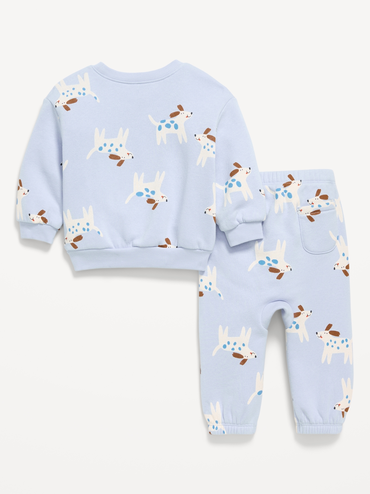 Printed Henley Sweatshirt and Sweatpants Set for Baby: crew neck, long sleeves, two-button henley placket, matching sweatpants, elasticized waistband, patch pocket at back, all-over print, #802716