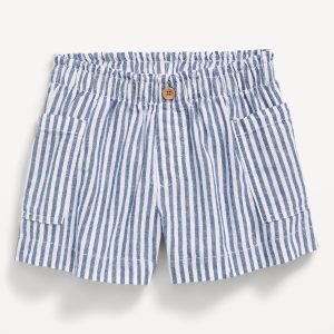 Printed Linen-Blend Utility Shorts for Girls: elasticized waistband, decorative button front, utility patch pockets at each side, all-over print, #767129