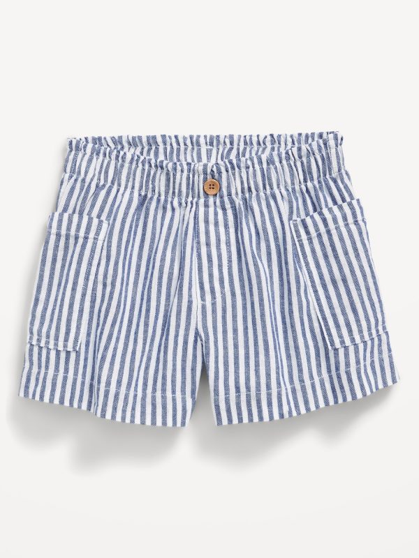 Printed Linen-Blend Utility Shorts for Girls: elasticized waistband, decorative button front, utility patch pockets at each side, all-over print, #767129