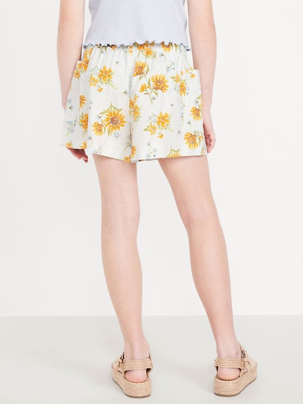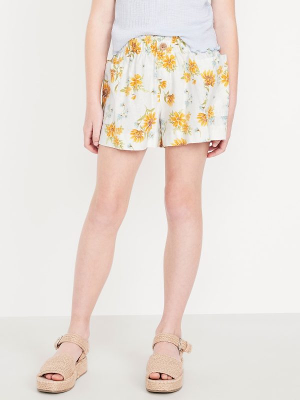Printed Linen-Blend Utility Shorts for Girls: elasticized waistband, decorative button front, utility patch pockets at each side, all-over print, #767129