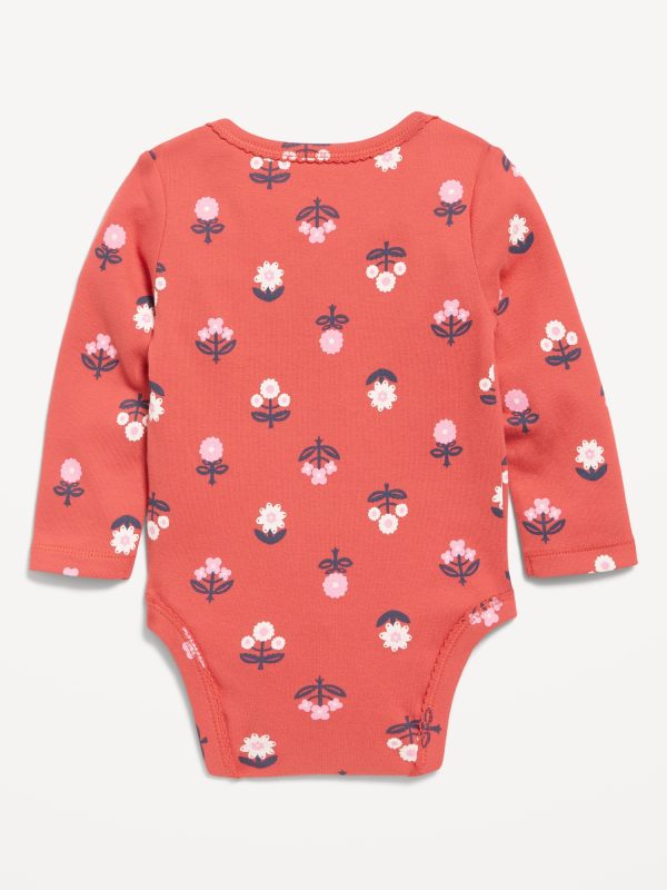 Printed Long-Sleeve Bodysuit for Baby: envelope neckline, long sleeves, graphic at front, snaps along inseam, online exclusive, #801542