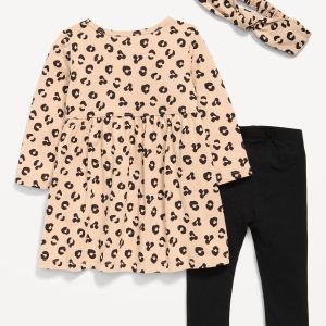Printed Long-Sleeve Dress, Leggings and Headband for Baby