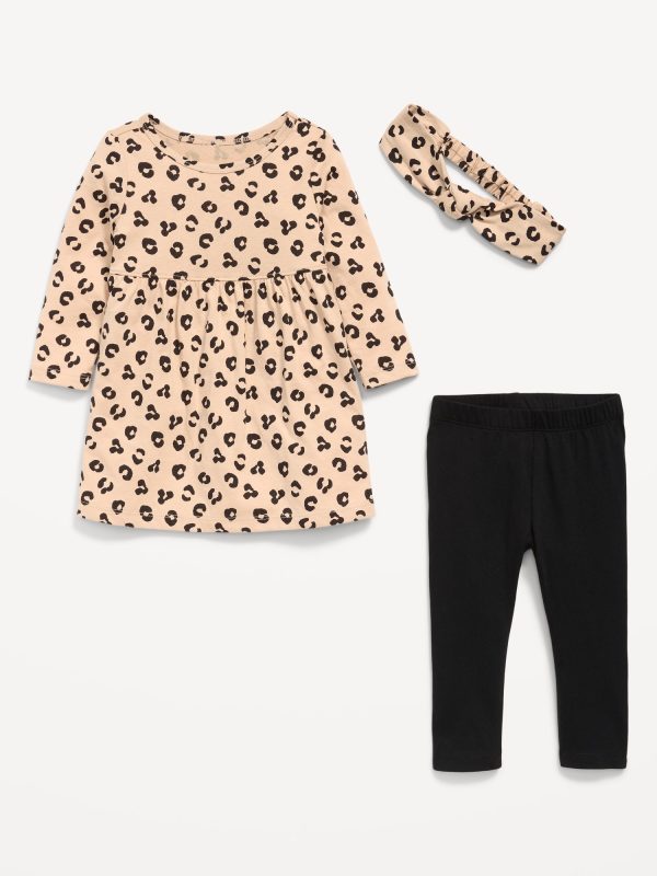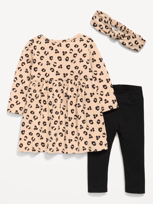 Printed Long-Sleeve Dress, Leggings and Headband for Baby