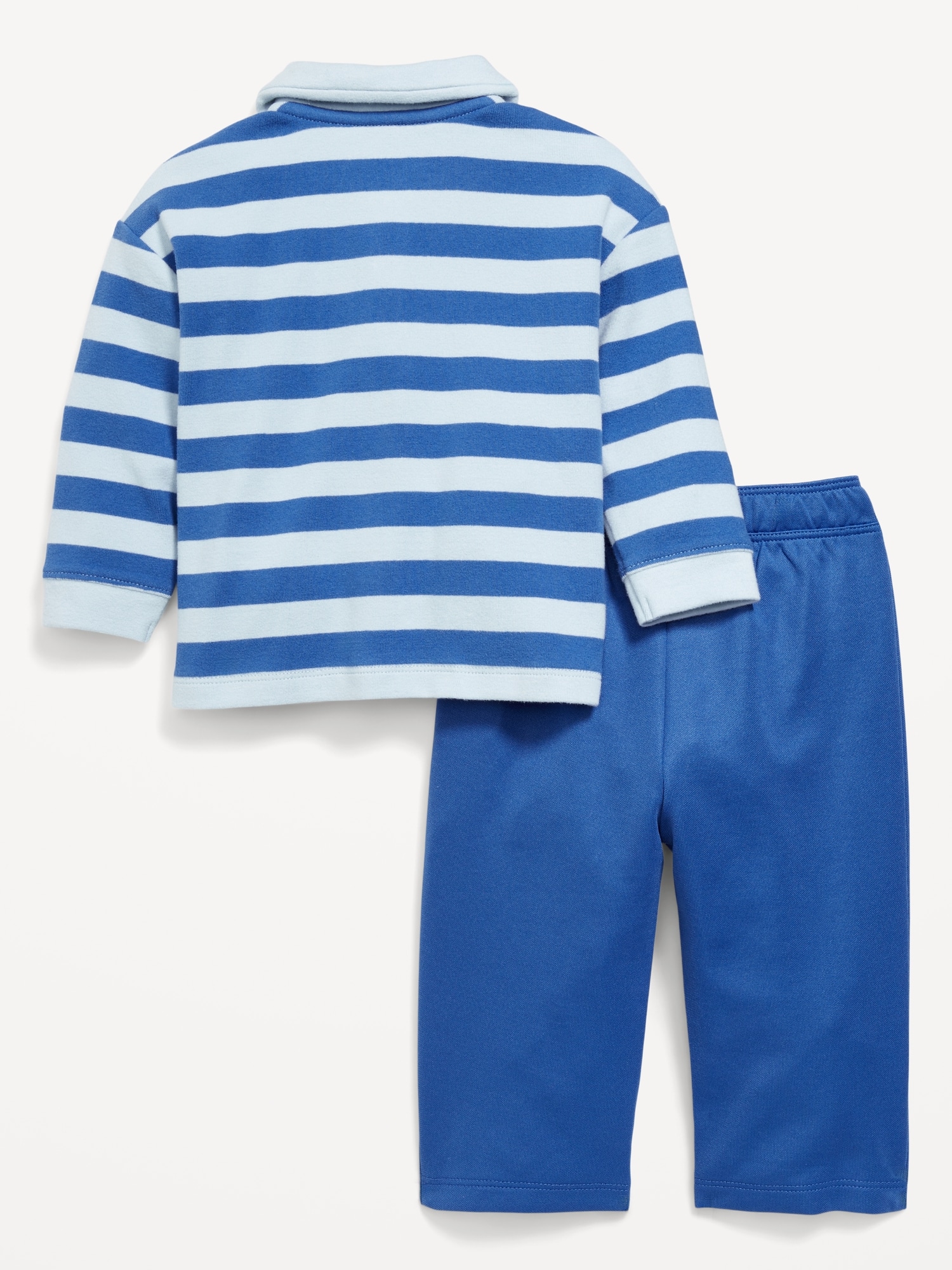 Printed Long-Sleeve Polo Shirt and Pants Set for Baby