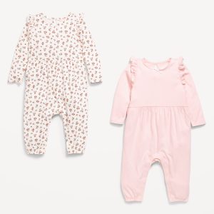 Printed Long-Sleeve Ruffle-Trim One-Piece 2-Pack for Baby