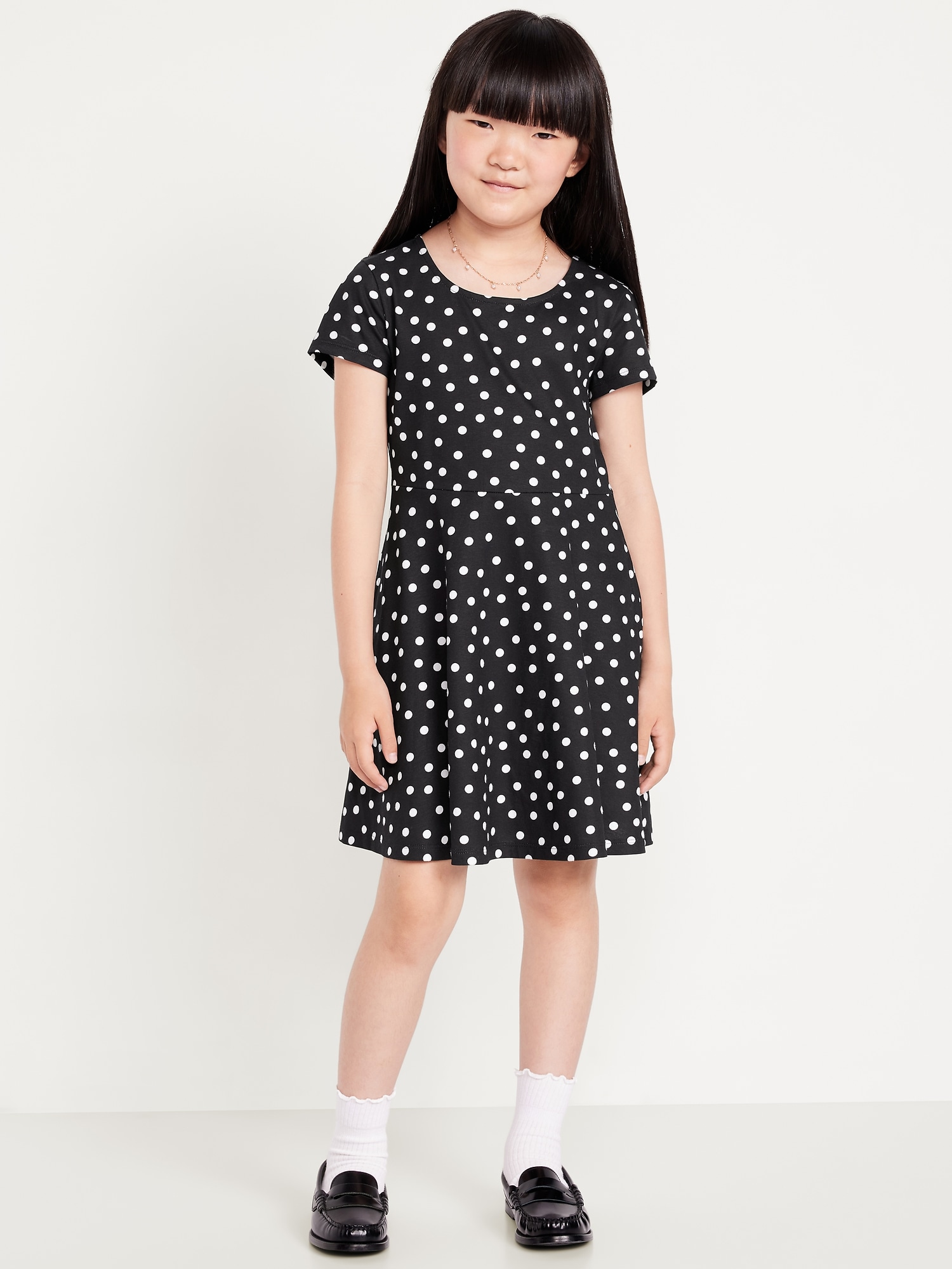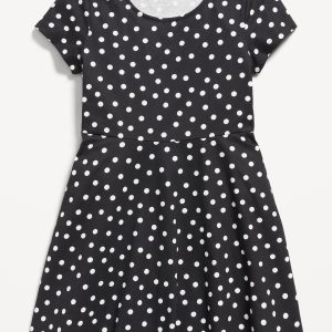 Printed Short-Sleeve Fit and Flare Dress for Girls