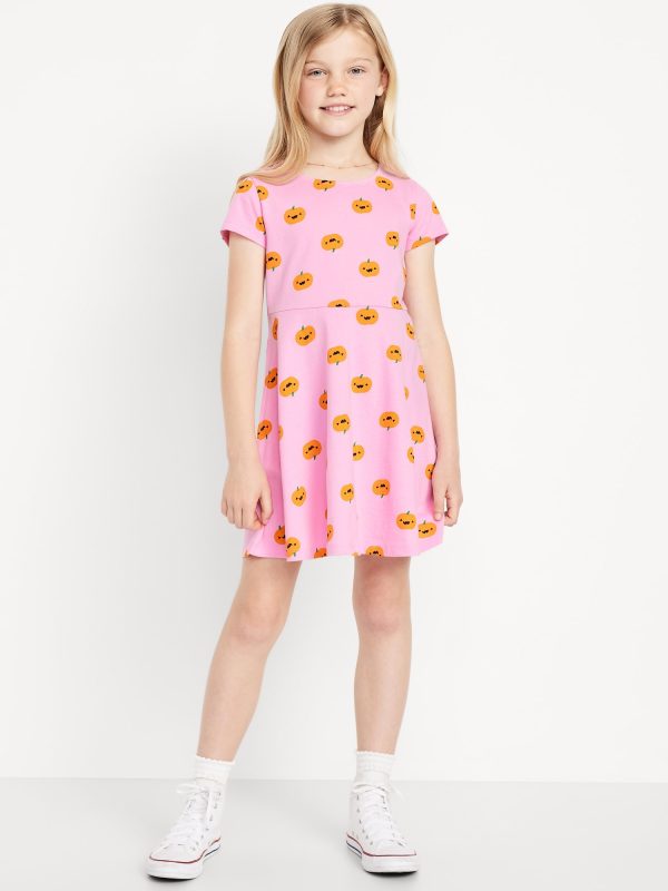 Printed Short-Sleeve Fit and Flare Dress for Girls