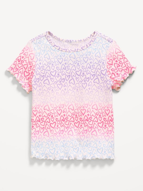 Printed Short-Sleeve Lettuce-Edge T-Shirt for Toddler Girls: Mix Match Go Productrounded neckline, short sleeves, lettuce edge cuffs and hem, all-over print, #690530