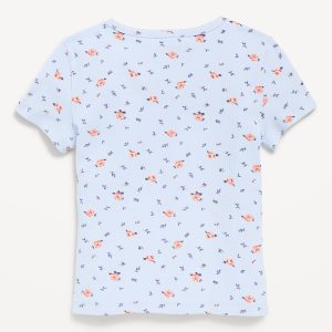 Printed Short-Sleeve Ribbed T-Shirt for Girls