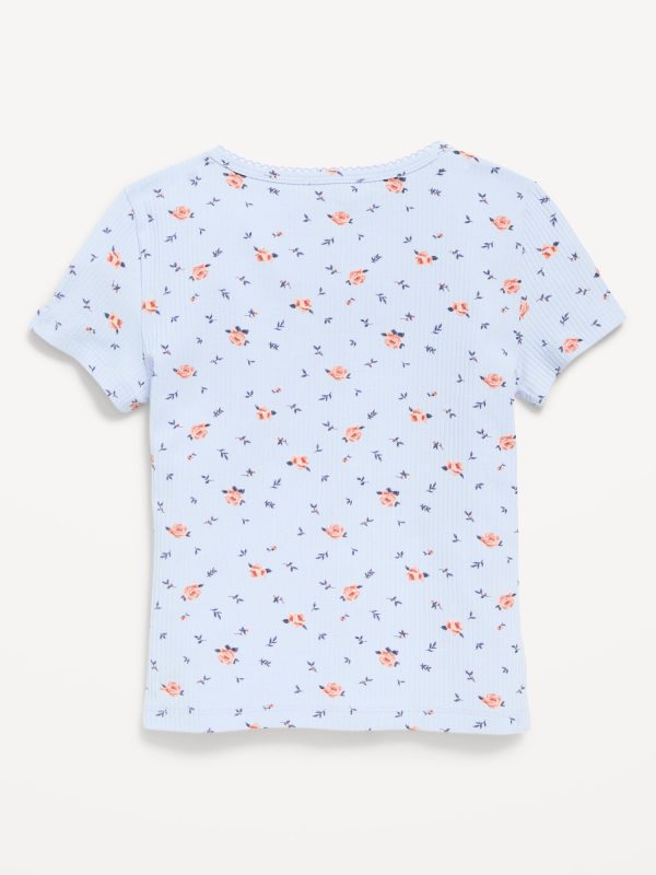 Printed Short-Sleeve Ribbed T-Shirt for Girls