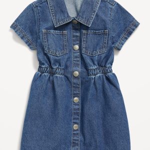 Printed Short-Sleeve Ruffled Bow Dress for Toddler Girls