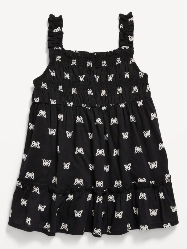 Printed Sleeveless Ruffle-Trim Smocked Dress for Baby