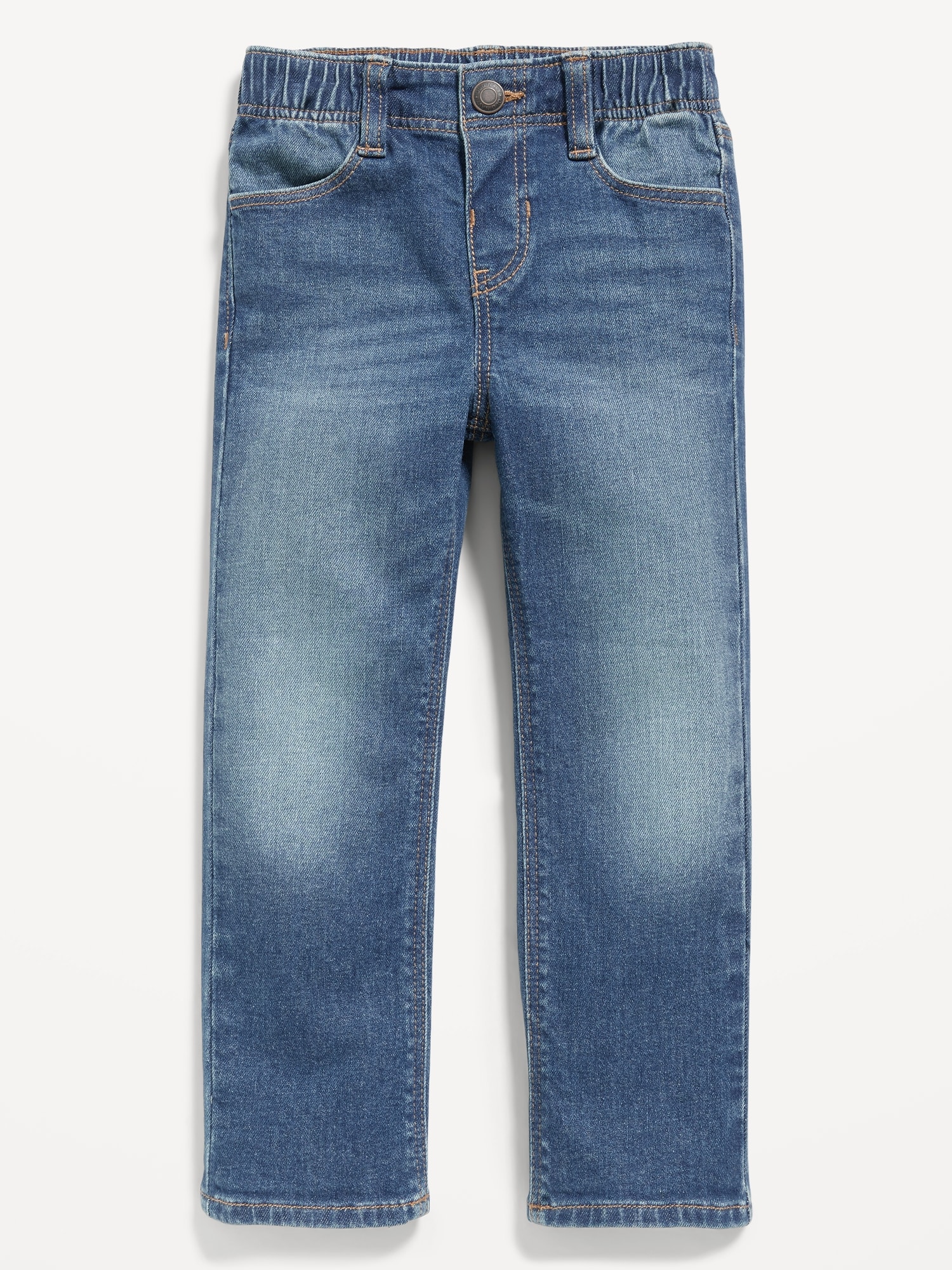 Pull-On Skinny Jeans for Toddler Boys: elasticized waistband, decorative non-functional button, built-in belt loops, faux fly, scoop pockets and coin pocket at front, patch pockets at back, easy pull-on style, #867800