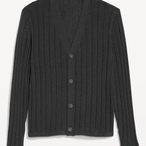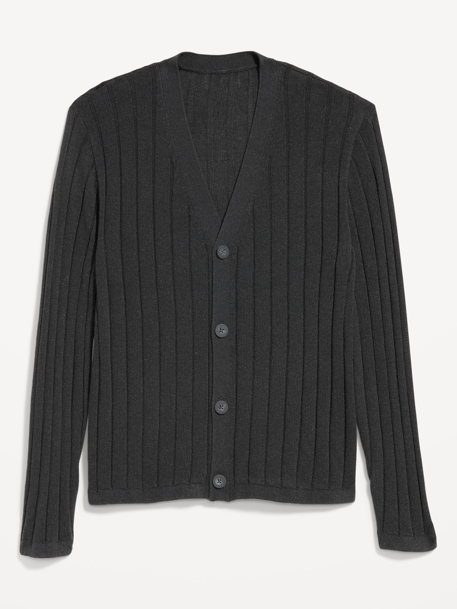 Ribbed Button-Front Cardigan: v-neck, long sleeves, four-button front, #791324