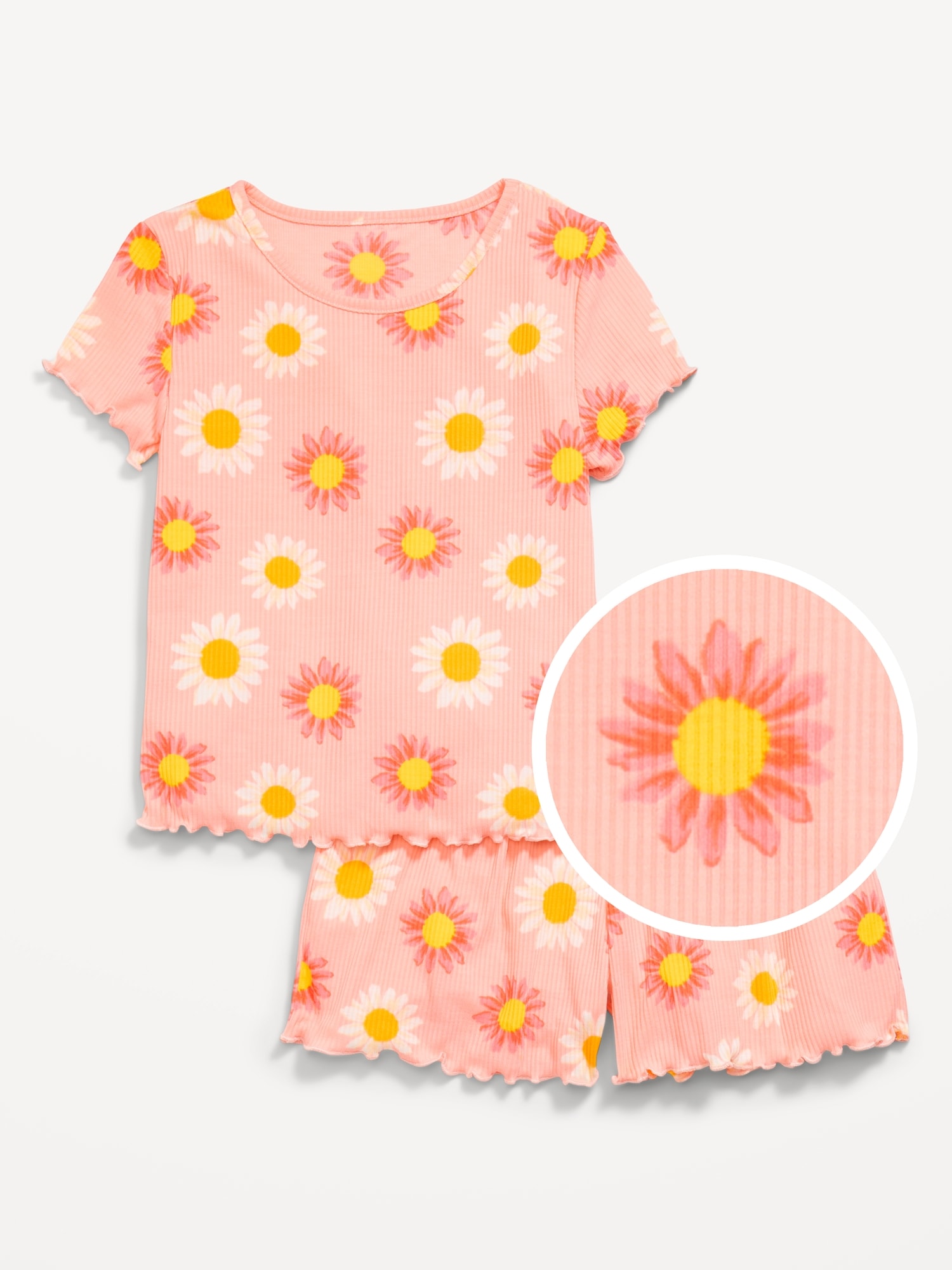 Ribbed Lettuce-Edge Pajama Top and Shorts Set for Girls: crew neck, short sleeves, lettuce edge cuffs and hem, matching shorts, elasticized hem, lettuce edge cuffs, all-over print, #762270