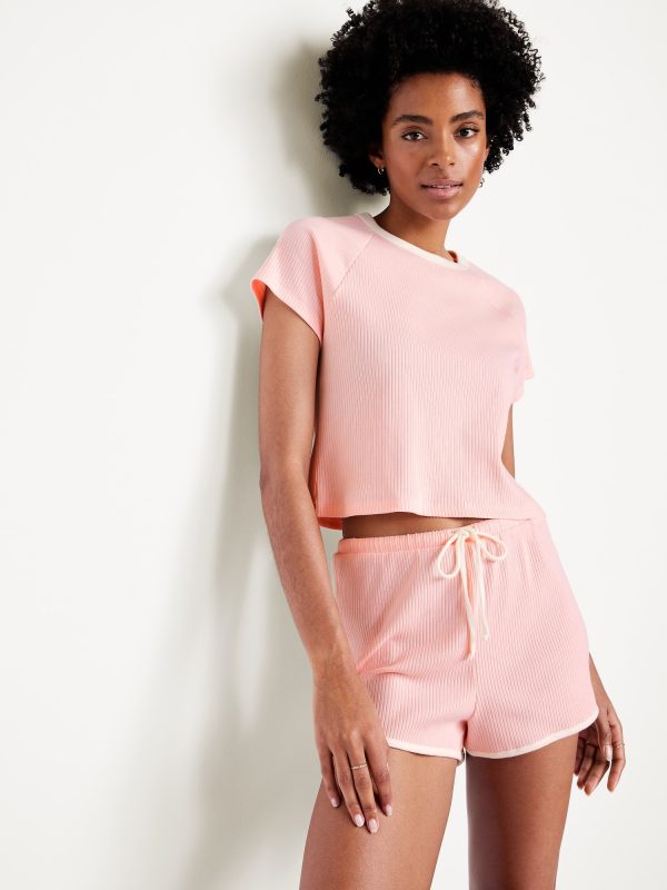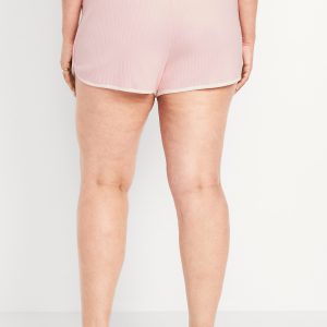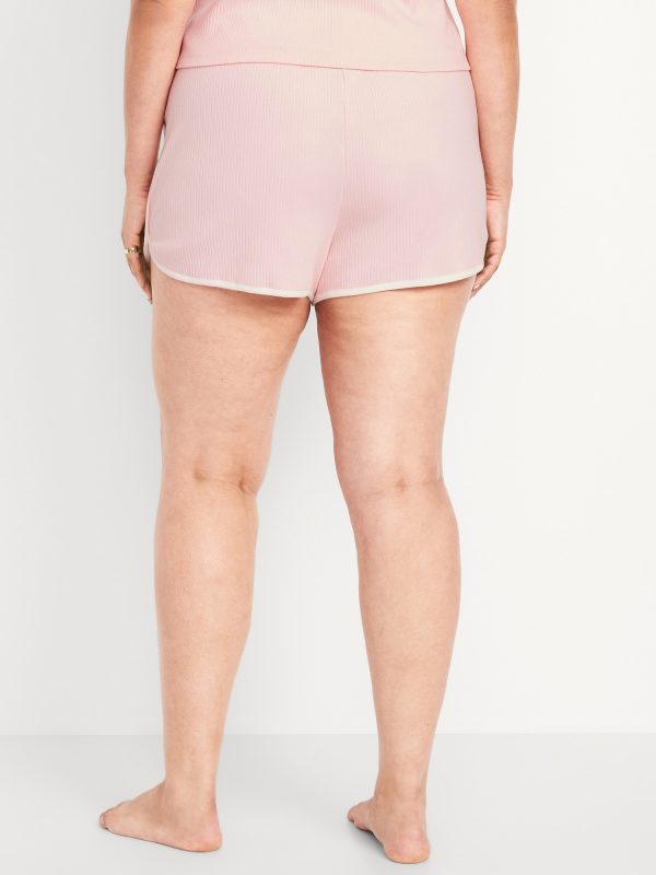 Ribbed Pajama Shorts: elastic-drawstring waistband, dolphin hem, pull-on style, prints vary, #766782