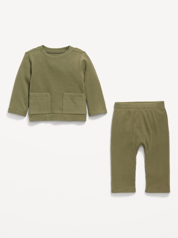 Ribbed Pocket T-Shirt and Pants Set for Baby: crew neck, long sleeves, patch pockets at hem, matching pants, elasticized waistband, #801530