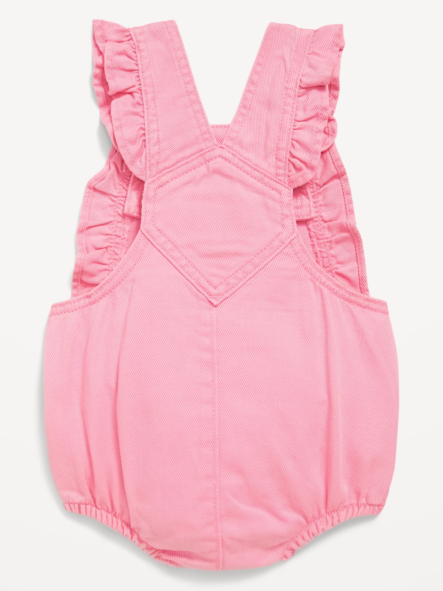 Ruffle-Trim Twill Pocket Shortalls for Baby