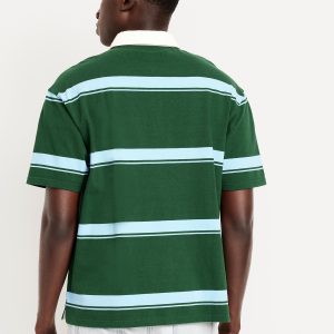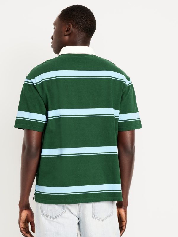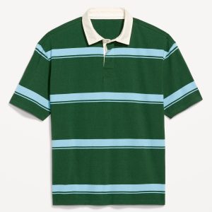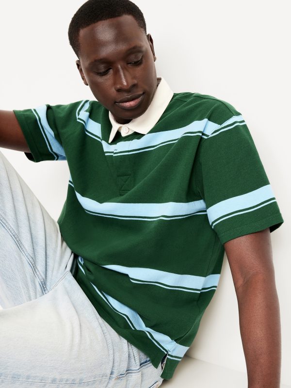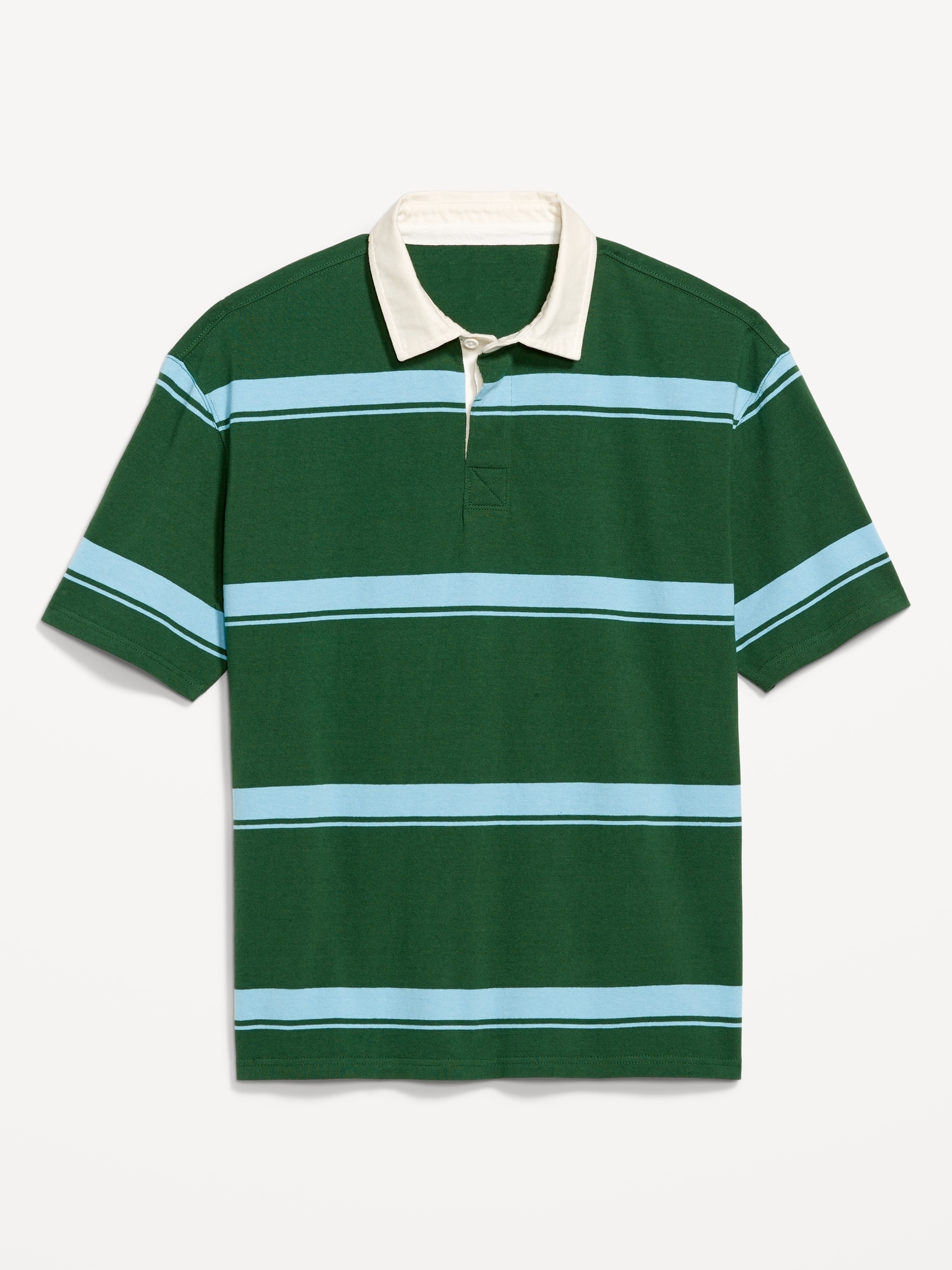 Rugby Stripe Polo: spread collar, short sleeves, buttoned placket, contrasting rugby-style stripes, vented sides, #762339
