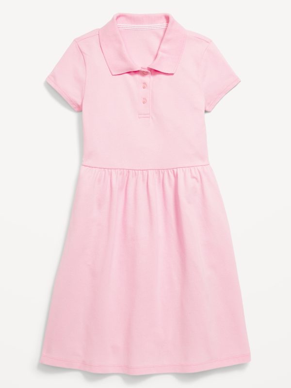 School Uniform Fit and Flare Pique Polo Dress for Girls