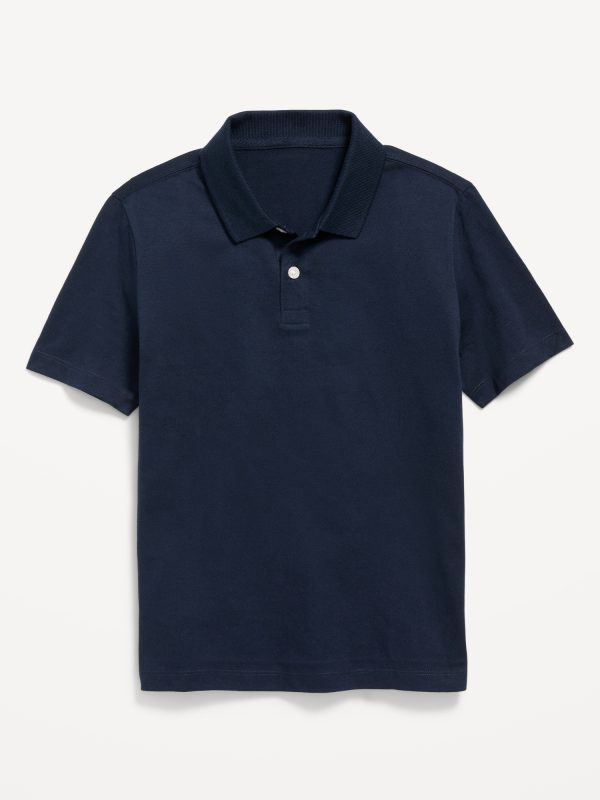 School Uniform Jersey Polo Shirt for Boys: rib-knit collar, two-button placket, short sleeves, #621877
