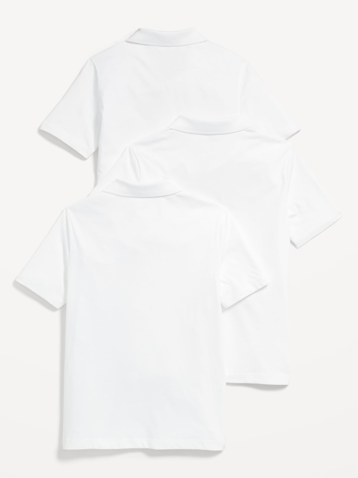 School Uniform Polo Shirt 3-Pack for Boys: pointed rib-knit collar, short sleeves, two-button placket, straight hem, #769950