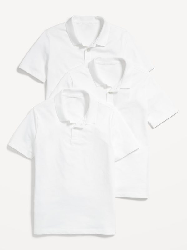 School Uniform Polo Shirt 3-Pack for Boys: pointed rib-knit collar, short sleeves, two-button placket, straight hem, #769950