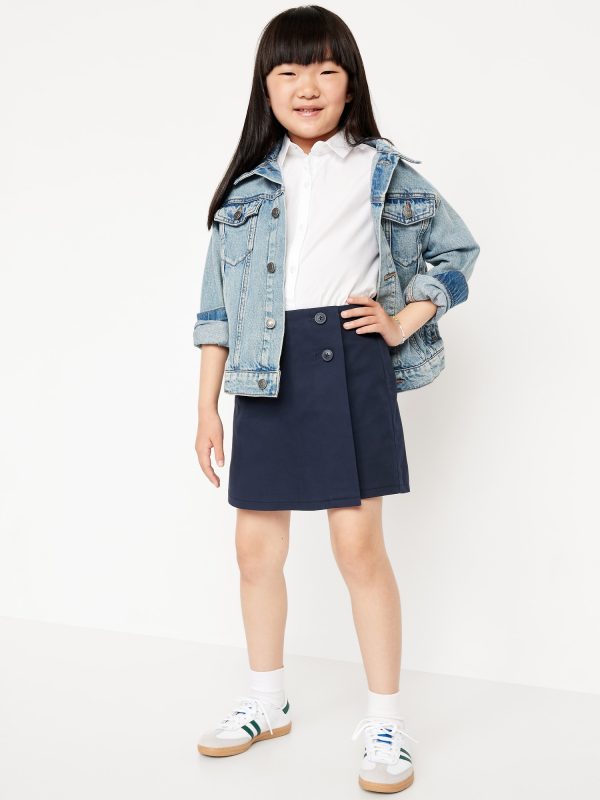 School Uniform Wrap-Front Skort for Girls: built-in shorts, elasticized back waist, decorative buttons, easy pull-on style, online exclusive, #766640