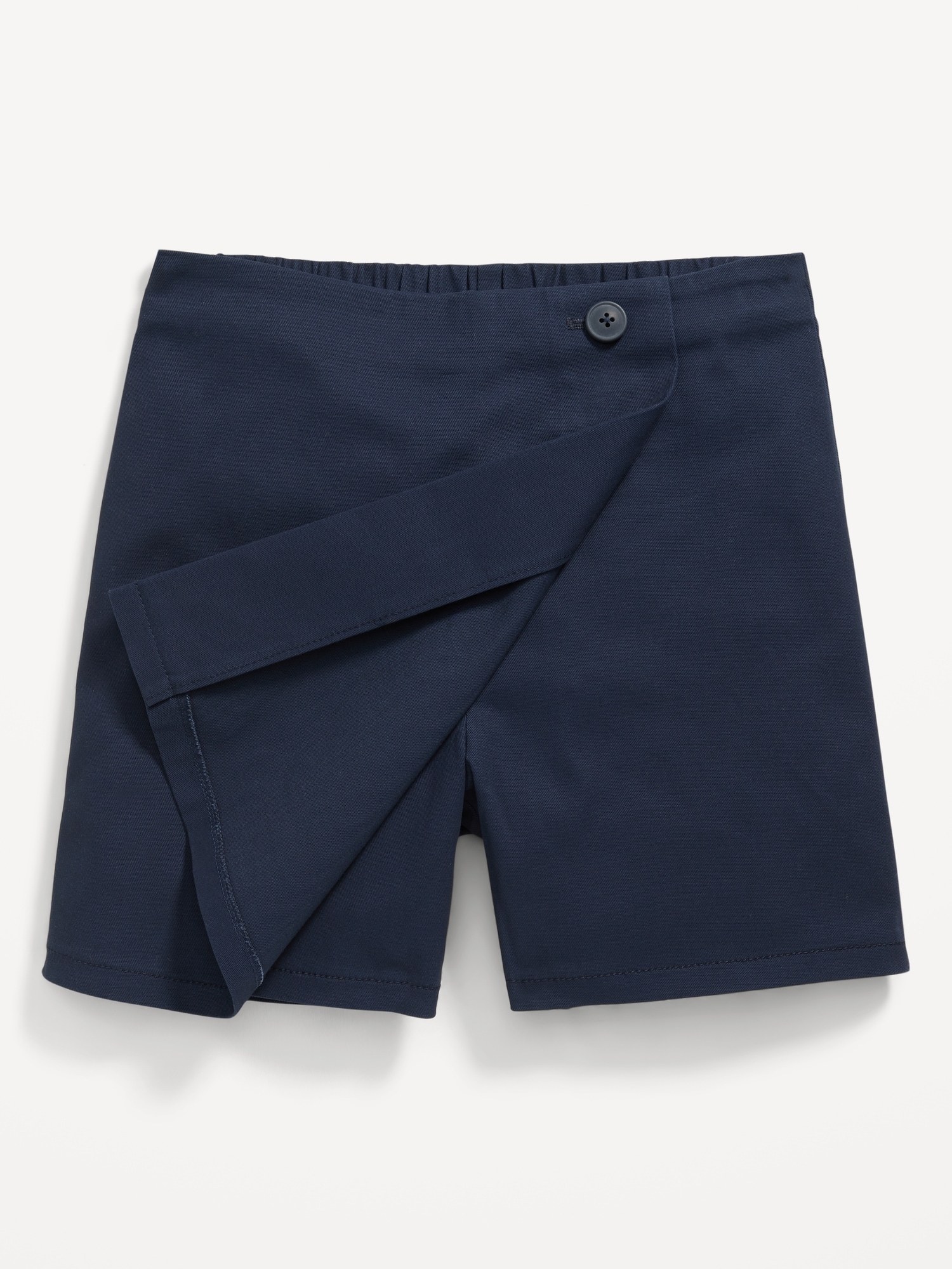 School Uniform Wrap-Front Skort for Girls: built-in shorts, elasticized back waist, decorative buttons, easy pull-on style, online exclusive, #766640