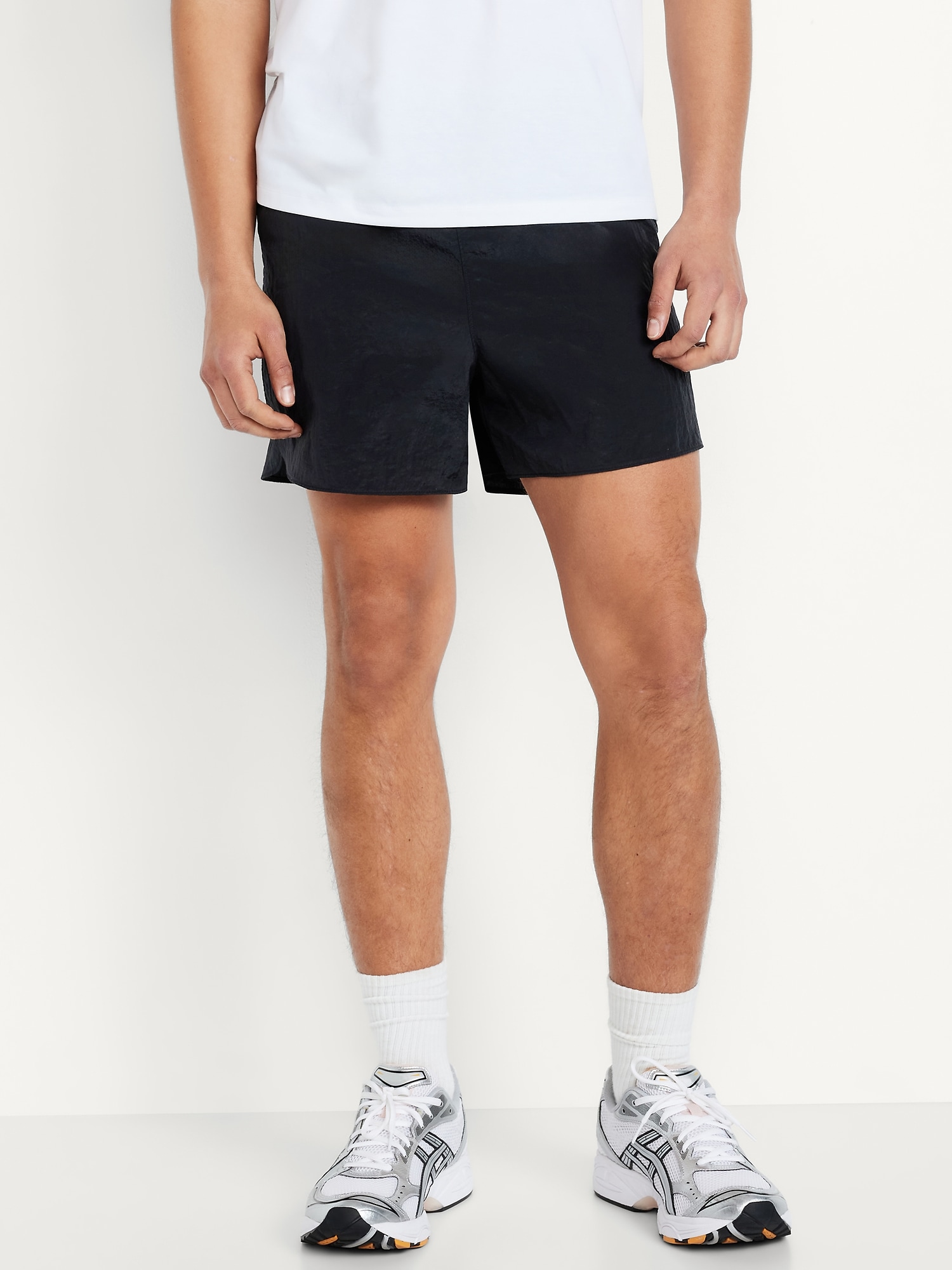 Shine Run Shorts — 5-inch inseam: elastic-drawstring waistband, back stash pocket with reflective trim, built-in briefs, vented sides, #766282