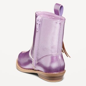 Shiny Side-Zip Western Boots for Toddler Girls: side-zipper, cushioned foot bed, embroidered pattern at sides, #790193