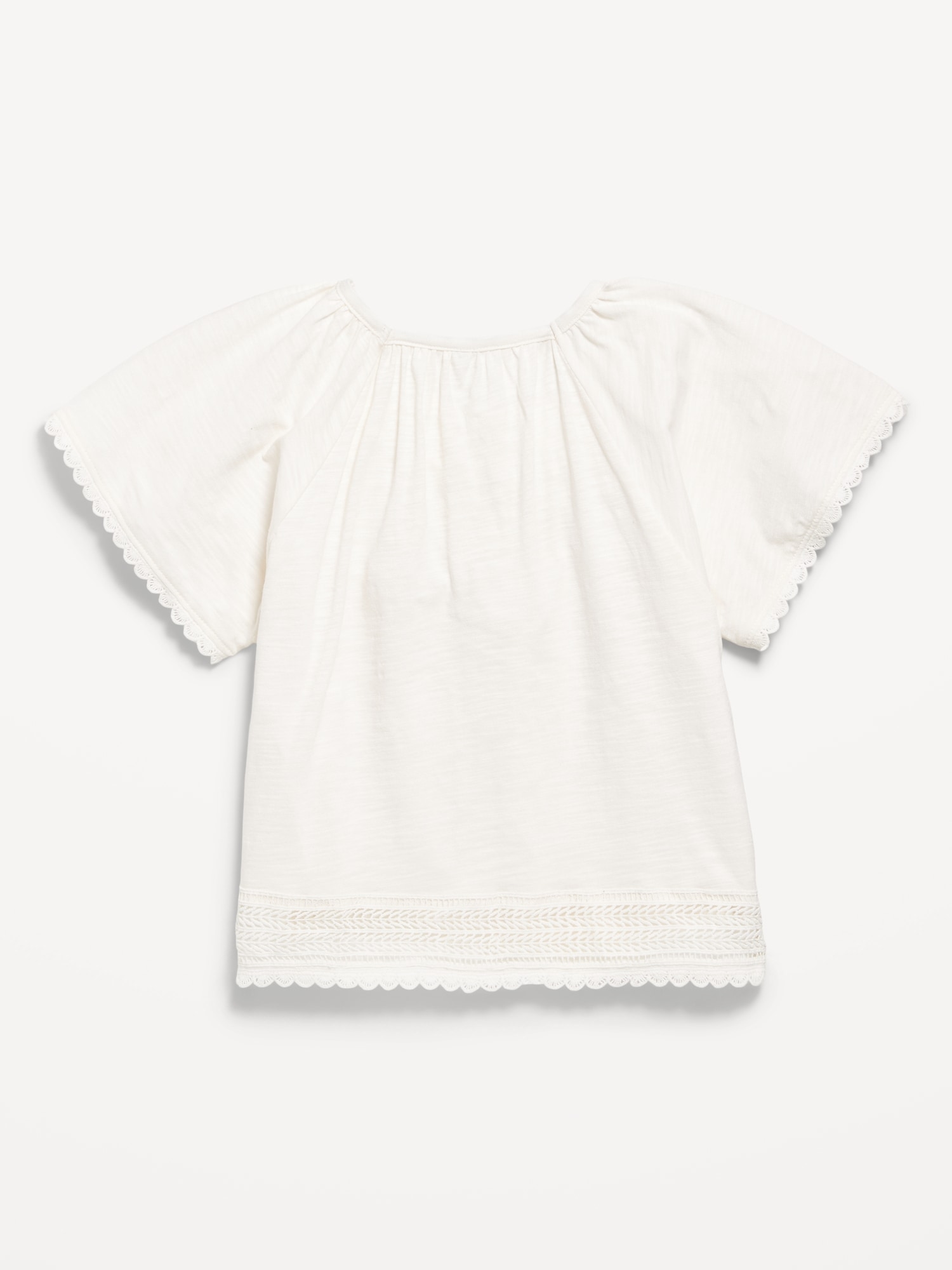 Short Flutter-Sleeve Crochet-Trim Top for Girls
