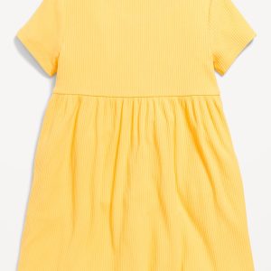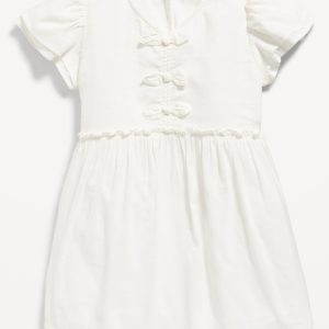 Short-Sleeve Cinched-Waist Twill Dress for Toddler Girls
