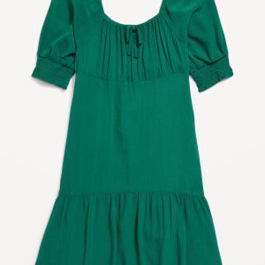Short-Sleeve Crinkle Crepe Swing Dress for Girls