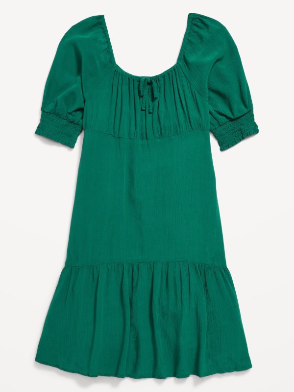 Short-Sleeve Crinkle Crepe Swing Dress for Girls