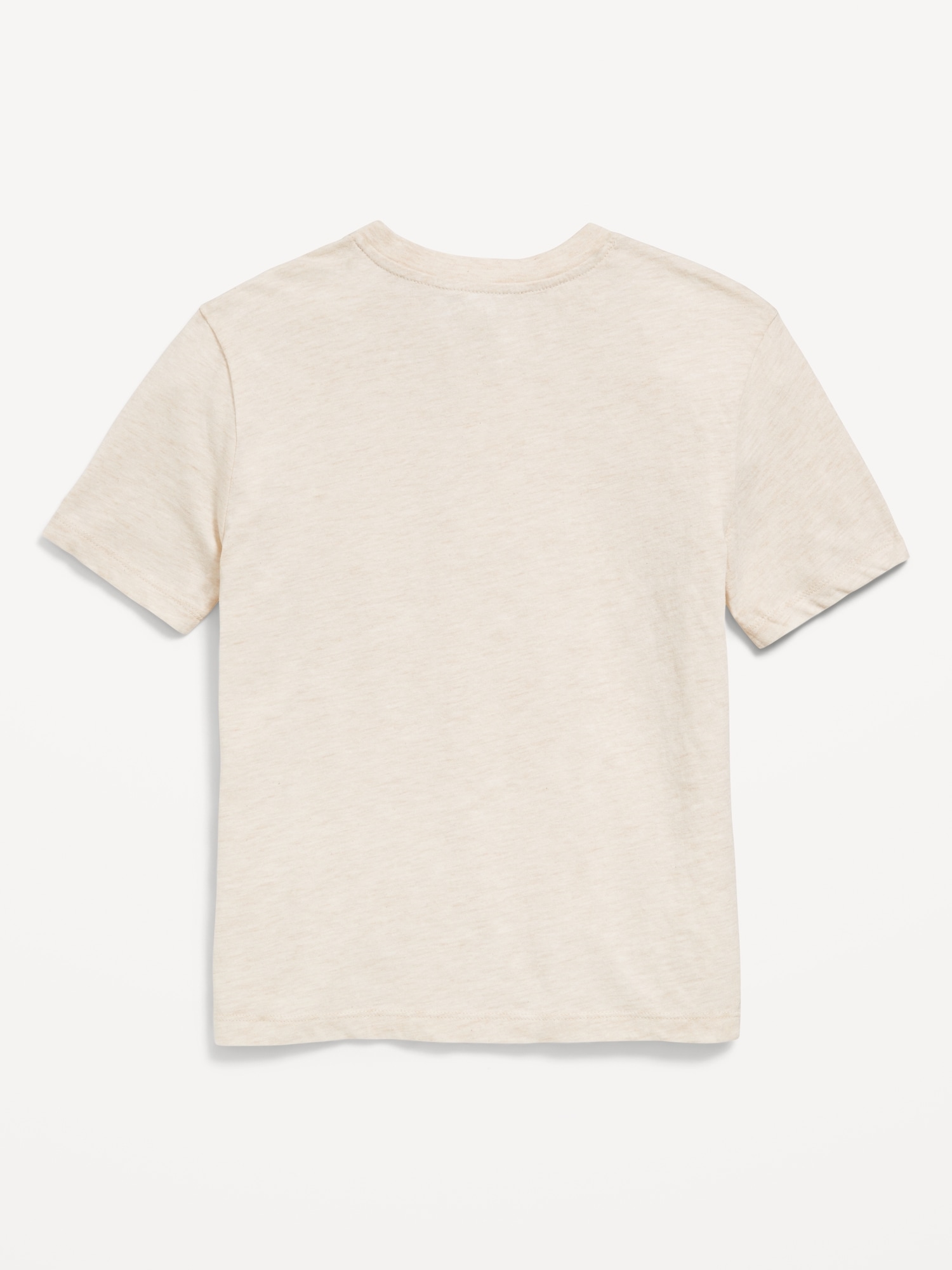 Short-Sleeve Henley T-Shirt for Boys: crew neck, short raglan sleeves, three-button henley placket, color block, #756921