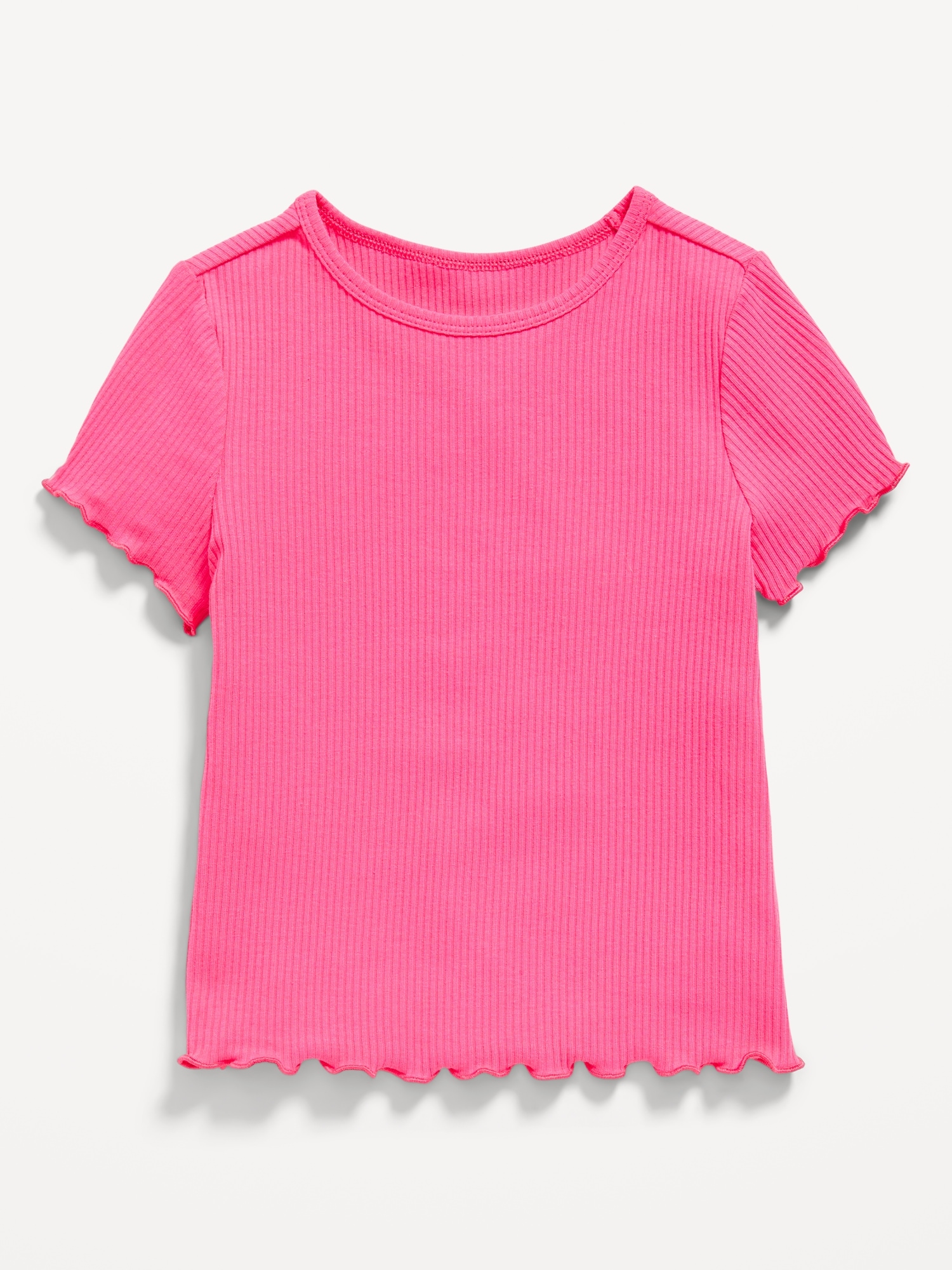 Short-Sleeve Lettuce-Edge Ribbed T-Shirt for Toddler Girls