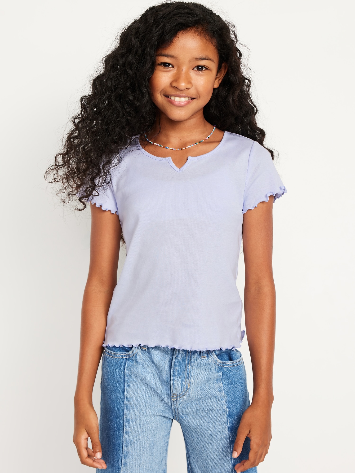 Short-Sleeve Lettuce-Edge T-Shirt for Girls