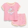 Short-Sleeve Logo-Graphic One-Piece for Baby: rounded neckline, keyhole cutout at nape, ruffle trim along arm openings, logo graphic, hidden snaps along inseam, all-over print, available exclusively online and at old navy outlet stores., #694153