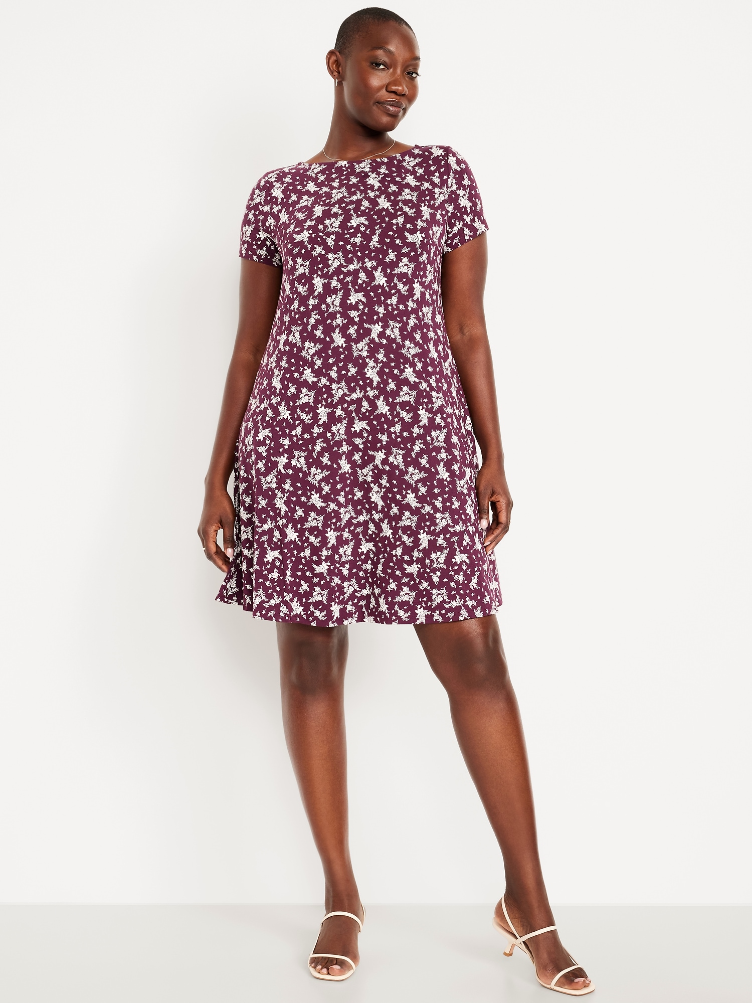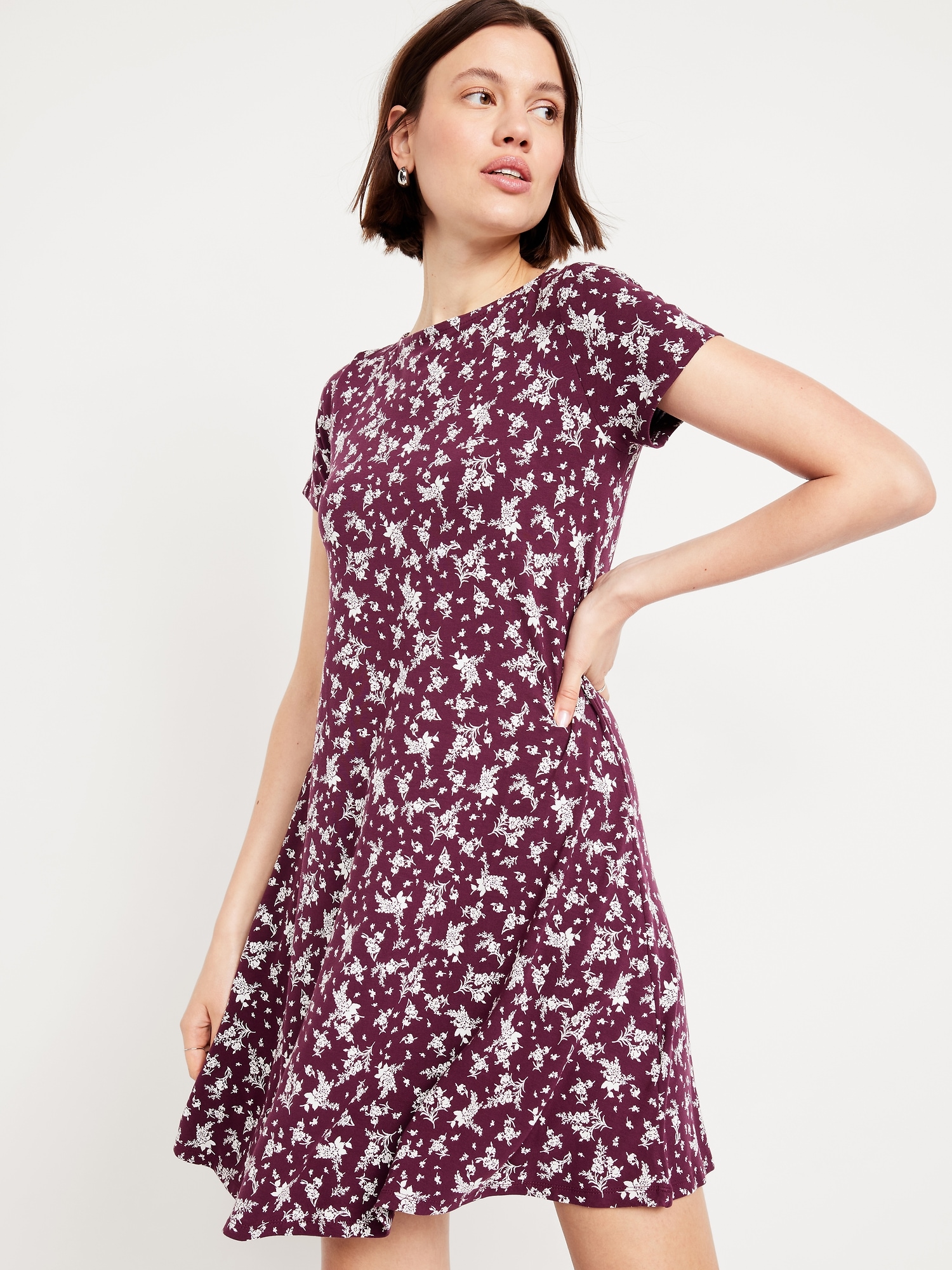 Short-Sleeve Mini Swing Dress: crew neck, short sleeves, available exclusively online or at outlet stores, #808844