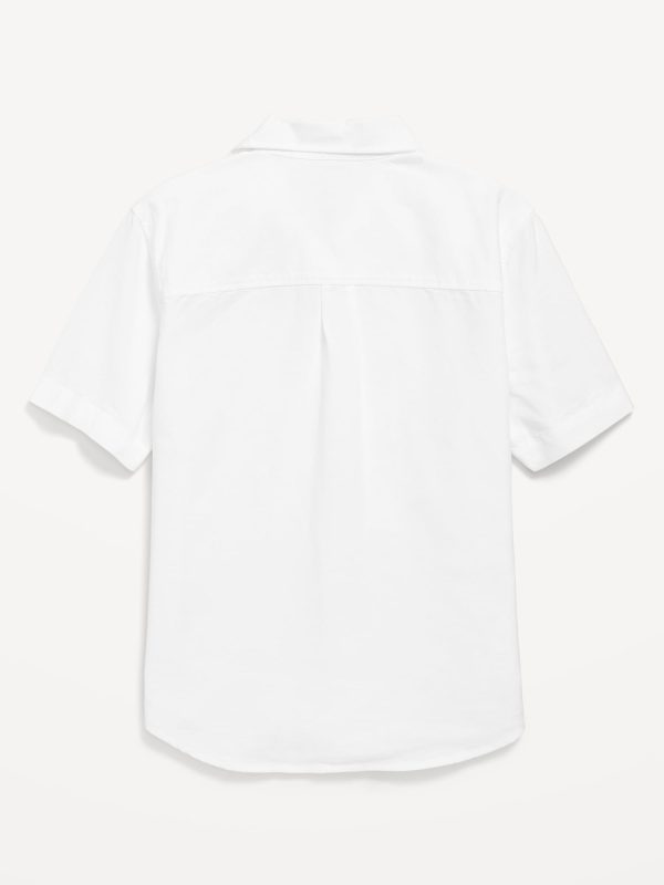 Short-Sleeve Oxford Shirt for Boys: spread collar, short sleeves, patch pocket at chest, full-length buttoned placket, all-over print, #865930