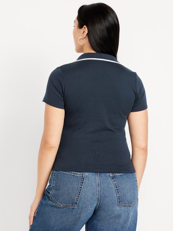 Short-Sleeve Polo: spread v-neck collar, short sleeves, striped print, #802261